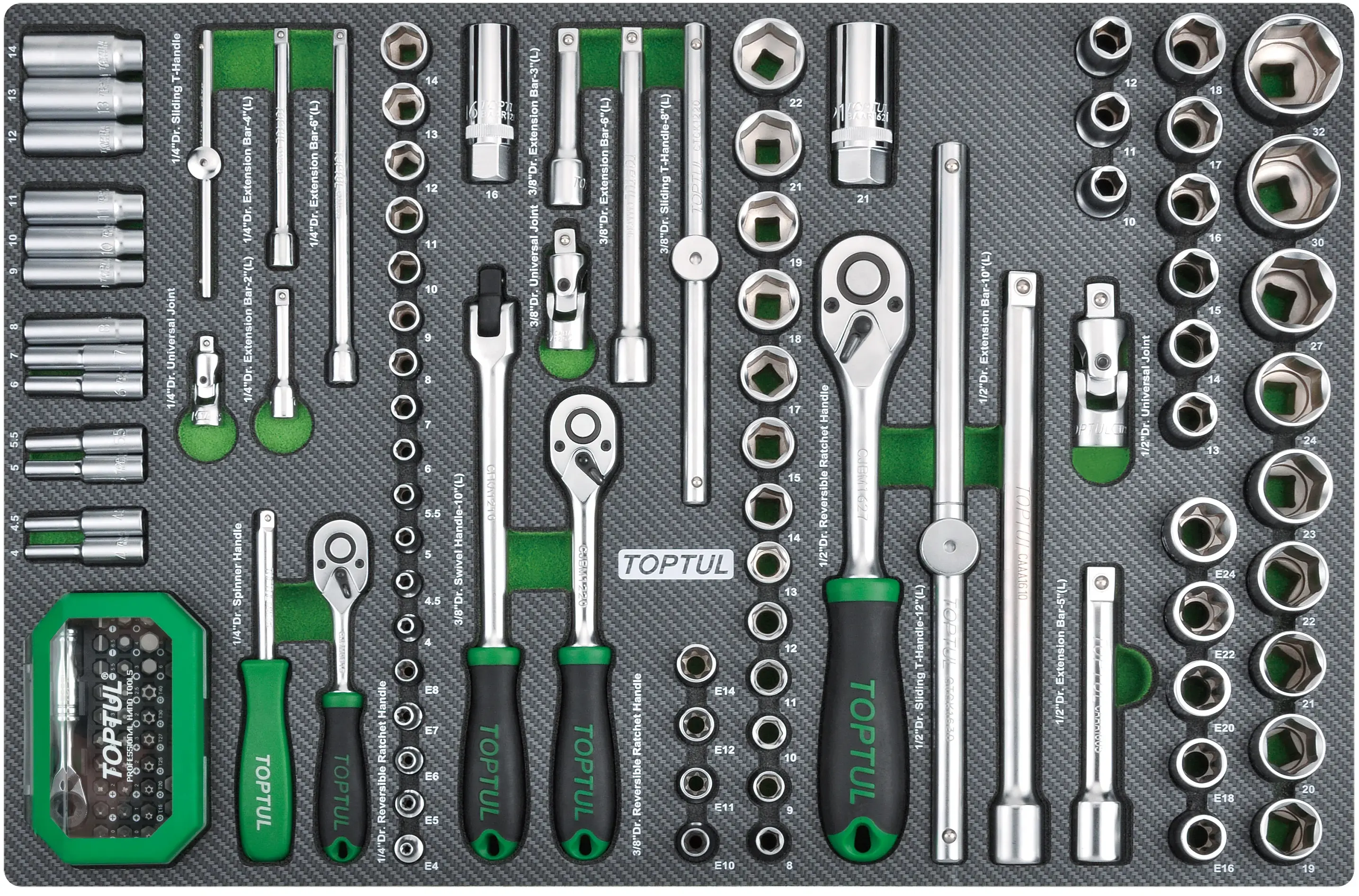 TOPTUL TABULEIRO JOGO CHAVES CAIXA 1/4″,3/8″ E 1/2″ GEDC0611