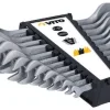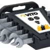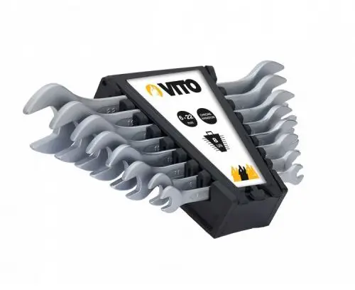 Características: – Corpo em aço cromo vanádio; – Suporte para armazenamento. 6×7, 8×9, 10×11, 12×13, 14×15, 16×17, 18×19, 20×22 mm