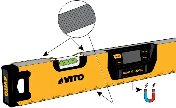 Nível Digital da VITO em alumínio, permite uma leitura direta e fácil das medições numéricas através do seu display digital