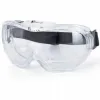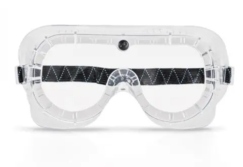 Ventilação indireta. Lentes em policarbonato endurecido. Podem ser usados com óculos graduados .