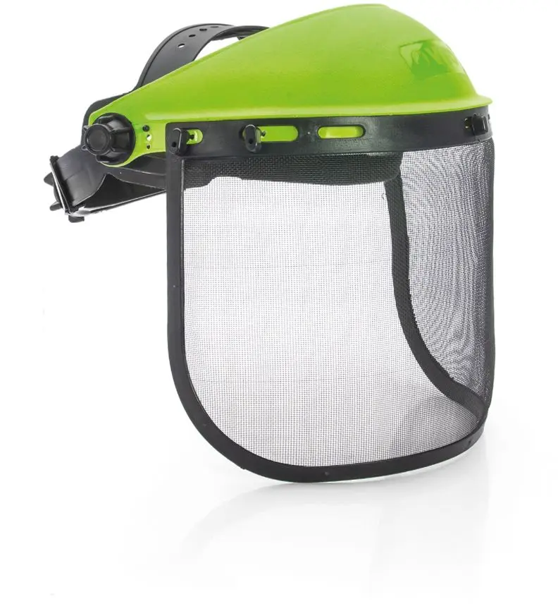 Reduz o risco de lesões na face. Visor: 8?x15-1/2?, composto por uma estrutura metálica. Proteção: efetiva contra o impacto de troncos, pedras e afins, decorrentes de trabalhos de corte diversos.